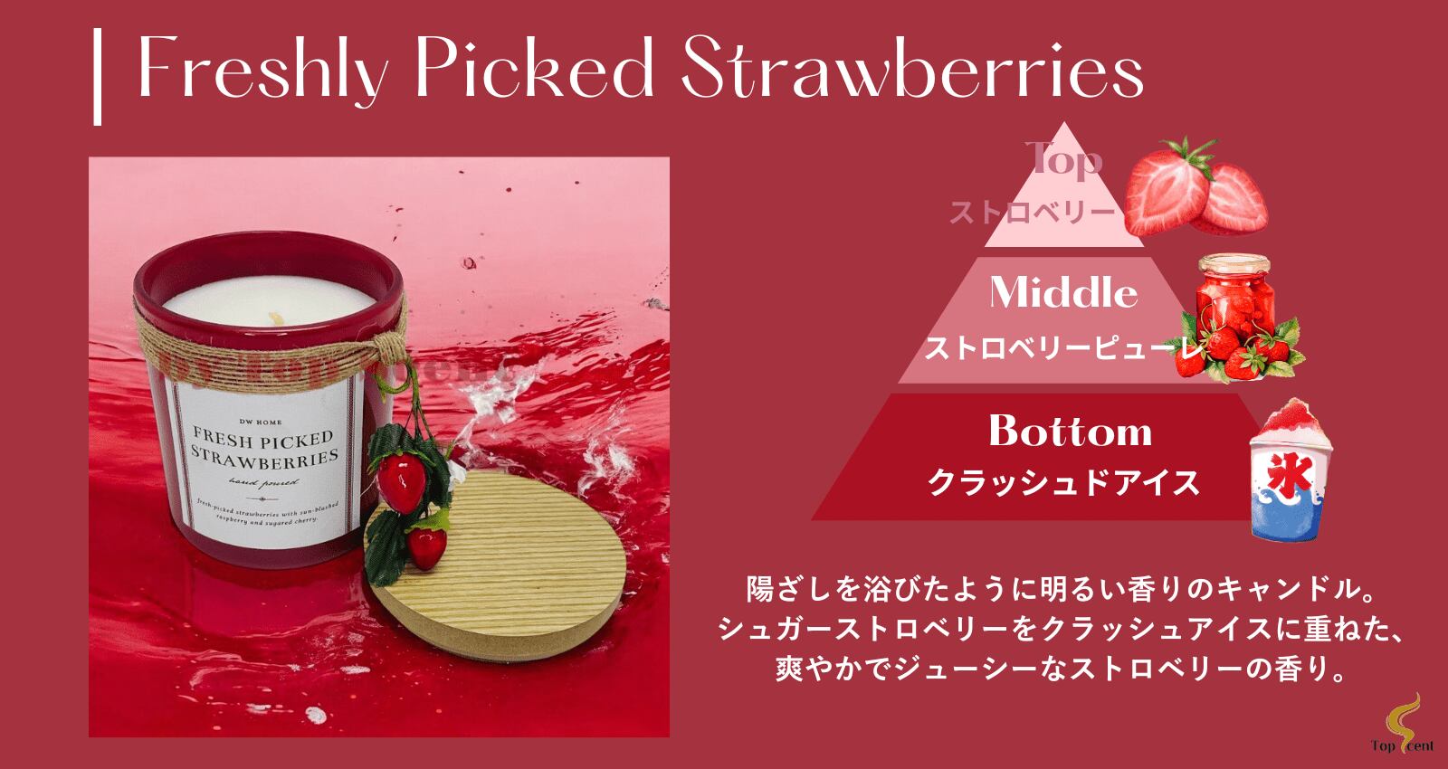 【DWHOME公認直営店】アロマキャンドル(イチゴの香り)|苺のアクセサリー 約33時間燃焼
