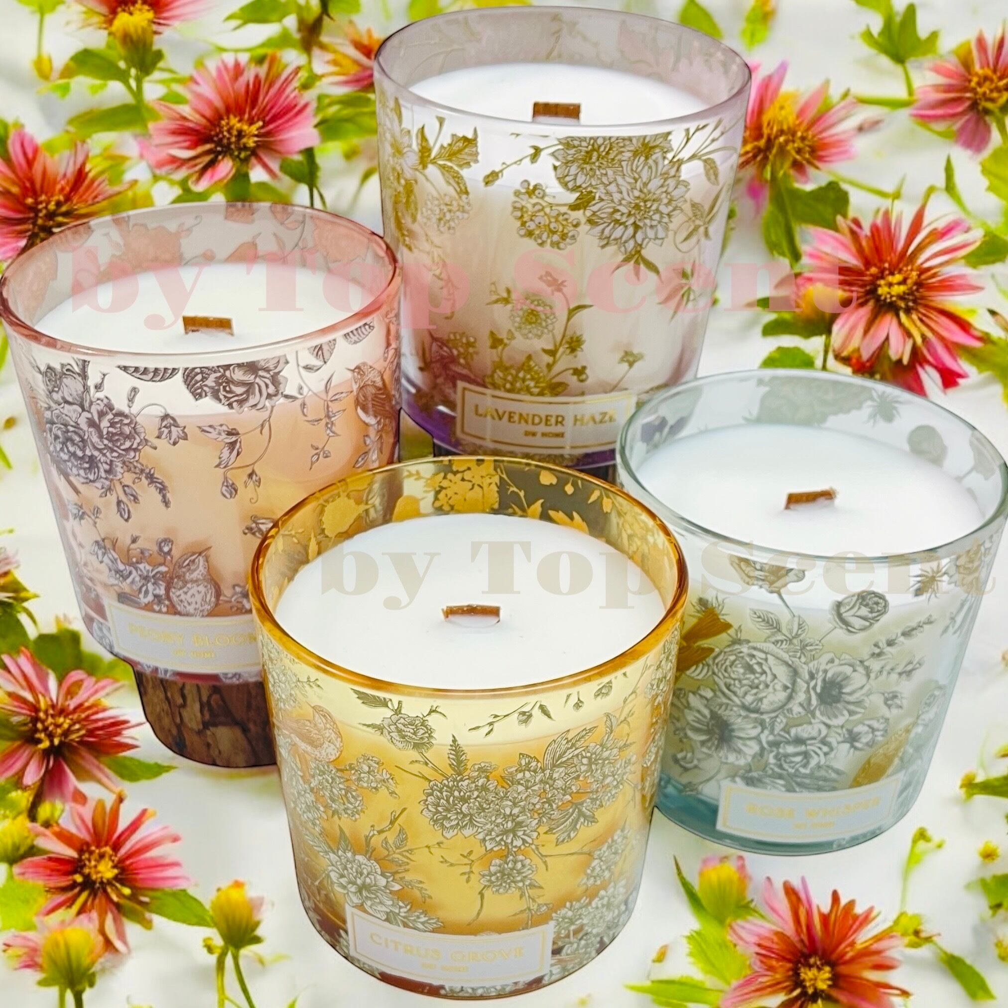 【DWHOME公認直営店】アロマキャンドル(フローラルの香り)|花柄 木芯 約40時間燃焼