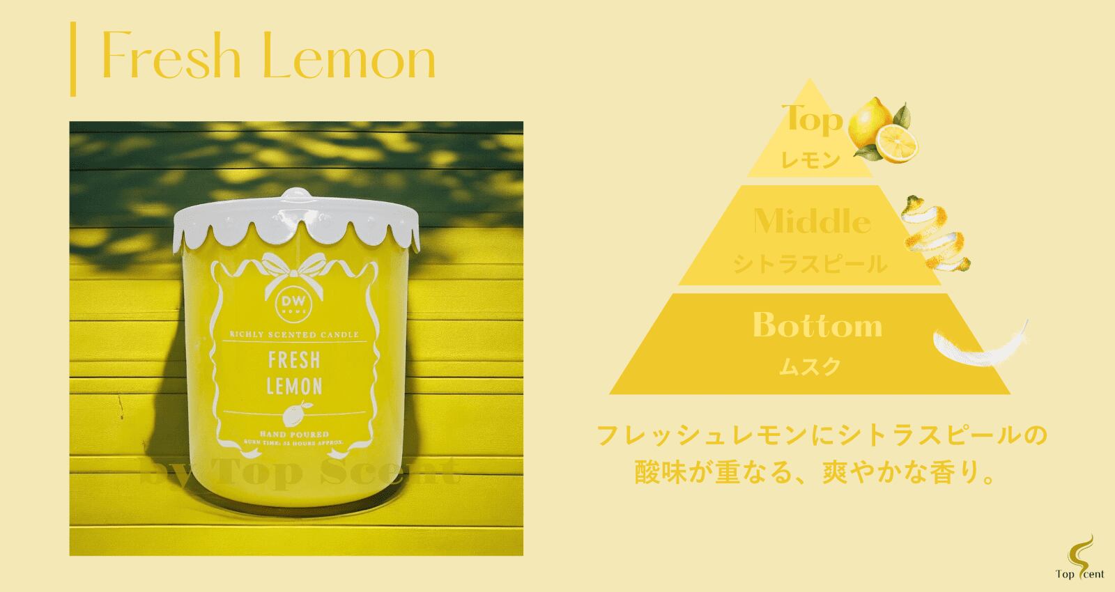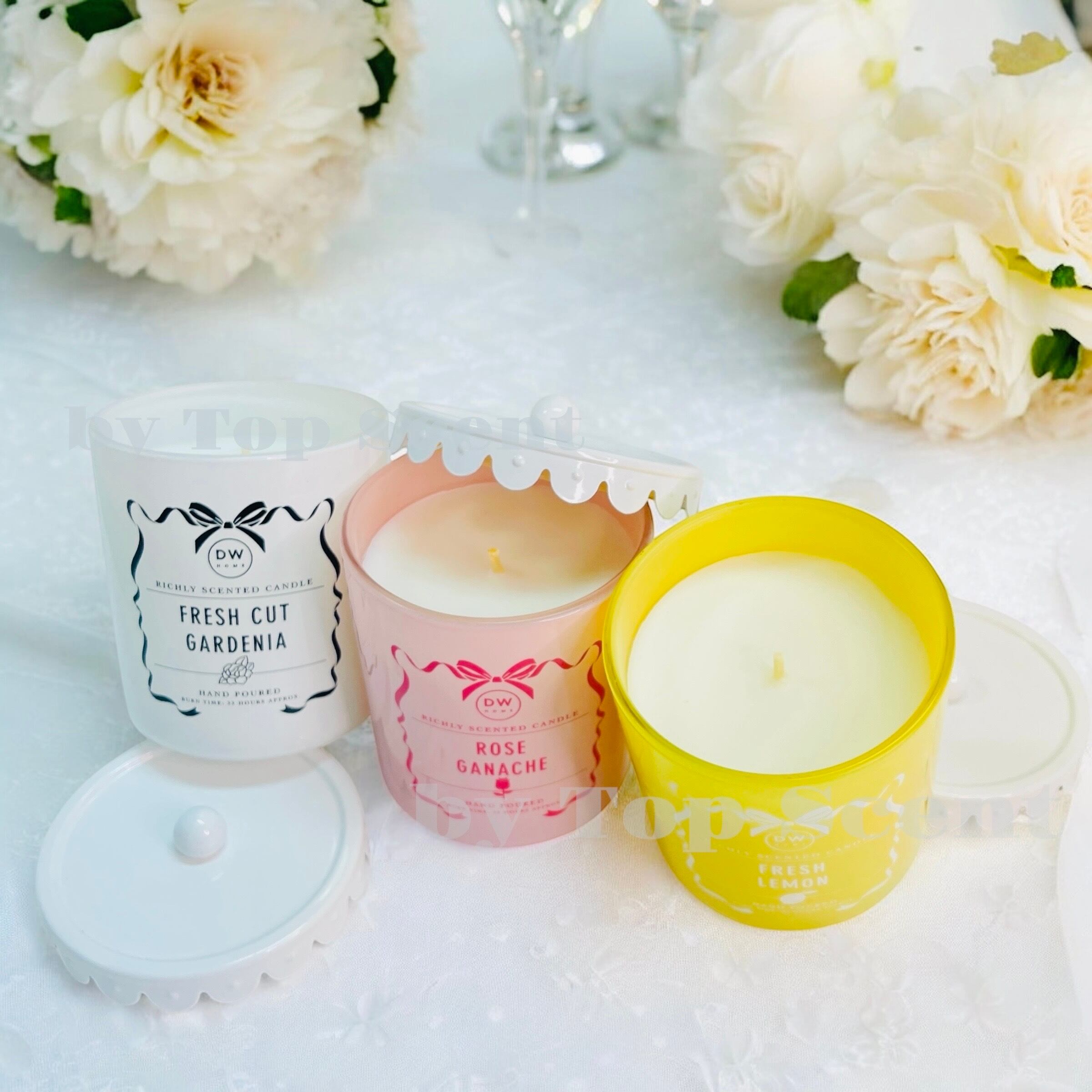 【DWHOME公認直営店】アロマキャンドル(レモン/ローズ/コットンフラワーの香り)約30時間燃焼