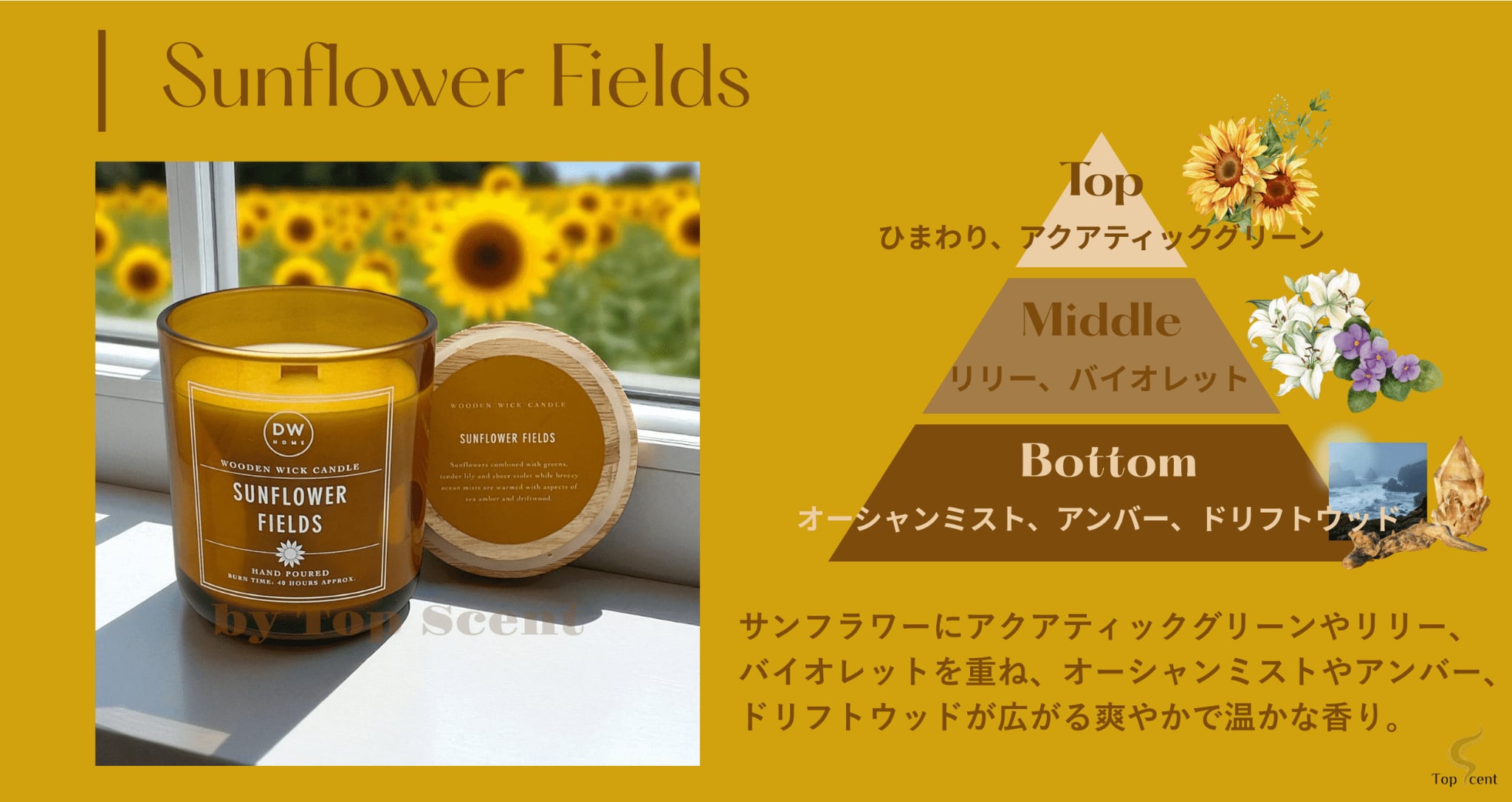 【DWHOME公認直営店】アロマキャンドル(フローラルの香り)|木芯 約40時間燃焼